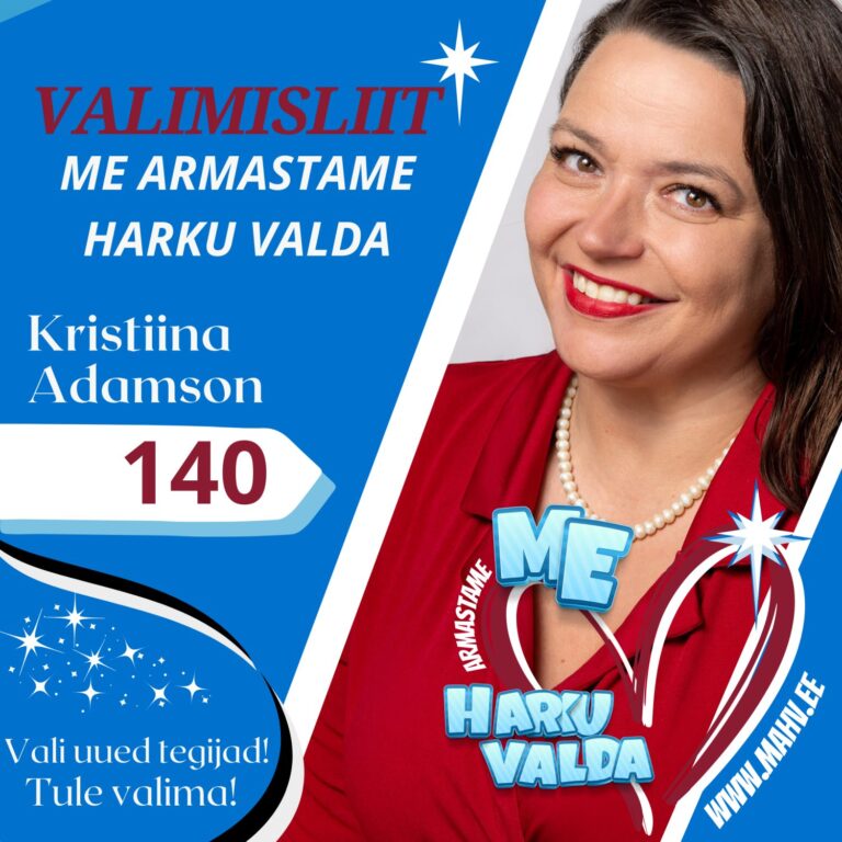 Kristiina Adamson – südame ja armastusega Harku valla heaks. Koos loome parema tuleviku, kus iga inimene ja iga küla on väärtuslik.